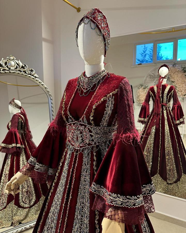Afyonkarahisar’da tesettürlü gelin adayları için özel tasarlanmış bindallı modelleri geniş bir koleksiyon oluşturur. Uzun kollu, yüksek yaka ve zarif işlemeli tasarımlar hem ölçülü hem de ihtişamlı bir görünüm sunar.