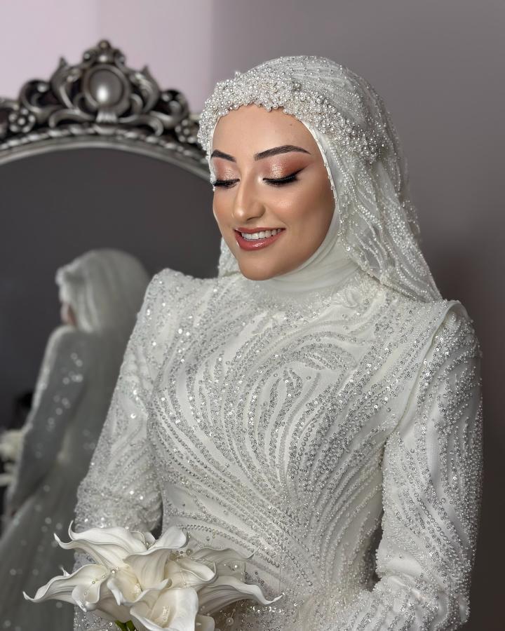 Afyonkarahisar’da tesettürlü gelin adayları için özel tasarlanmış modeller geniş bir koleksiyon oluşturur. Uzun kollu, yüksek yaka ve zarif dantel detaylı tasarımlar hem ölçülü hem de estetik bir görünüm sunar.